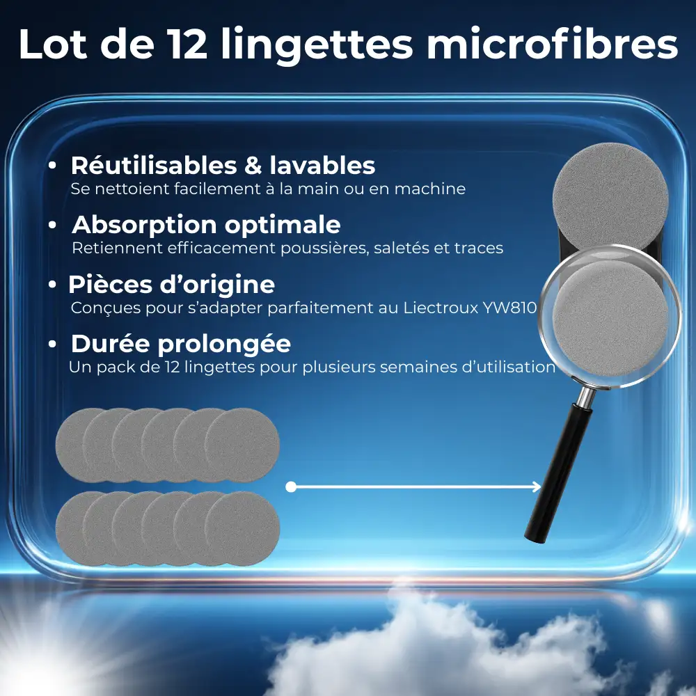 Ce pack de 12 bayetas de microfibra Liectroux YW810 tú permet de remplacer régulièrement tus pads et de conserver un niveau de performance constant.